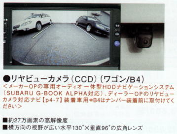 NAVI機能よりも大事なのがこのバックモニター セダンに比べて比較的後ろが見やすいツーリングワゴンだが やはり死角はあるので、装着した方がいいだろう。 ただ、このタイプは誘導線が表示されないのでそれに合わせて ハンドルを切ってまっすぐ停めるということはできない。 あくまでも障害物があるかないかの確認だけ。 |