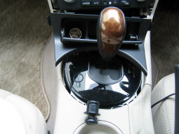 | できるだけ配線を見せたくないので、コンソール内側を通すことにした。 まずはATシフトレバーをニュートラル位置にしてからエンジンオフ。 センターコンソール両側のパネルを外す。内張り外しで簡単に外れる。 次にATシフト外側のリング状カバーを外す。これは細いので折らないように注意しつつ。 |