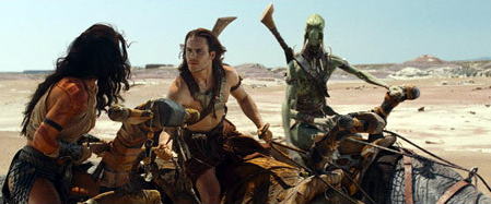 | 2012年、やっと春休みが終わってくれた。 子供向け作品が多かった映画も、これで一段落。やっと、オトナの時間が始まってくれて嬉しい。 というものの、いきなり観たい作品がカブってしまった。今回の「ジョン・カーター」と「バトルシップ」だ。どちらも甲乙付けがたいが、3D版の上映時間がタイミング良かったこの作品に決定。 じつは映画館での3D体験はこれが初めて。あのウザイ眼鏡をかけないといけないのと、何より割増料金が勿体ないから今まではずっと2D作品のほうを選んで観ていた。眼鏡のほうは”ミッション:インポッシブル”に出てくるカッチョ良いサングラスタイプだったのでヨシとしよう。でも、3D料金と眼鏡のレンタル料で計400円も余計に取るのはどうなんだろう。せっかく、安いレイトショーを選んで行っている意味があまりないような・・・。 料金の話しはともかく、3Dだからというわけではないがこの作品、意外(?)にも結構楽しめた。 舞台は現地でバルスームと呼ばれている火星だ。海はないが、水も大気もある。重力が地球の約半分ほどしかないため、超人的なジャンプ力を発揮できる。ただし、いささか飛び過ぎの感は否めないが(笑)。 ストーリーは騎兵隊のジョン・カーター大尉がそんな火星にワープして、民族戦争で大活躍するお話・・・あれ、そうじゃなかったっけ?まあ、簡単に言うとそういう設定になっている。 予備知識がなければ、出てくるキャラクターやストーリーから「あぁ、またスター・ウォーズやアバターのパクリね」と誤解するかも知れないが、この原作はなんと100年も前に作られた「火星のプリンセス」というSF小説。ジョージ・ルーカスやジェームズ・キャメロンにも影響を与えたというから、間違いなくこちらが先駆者だ。 ストーリーは大方の予想どおりの展開で、大どんでん返しみたいなことは最後まで起こらない。映像だってアバターの時みたいに衝撃的な作りではない。(余談だが、アバターをテレビで観ていたが退屈で1時間も我慢できなかった。これが世界中で大ヒットした理由が未だに理解できない) 不幸なことだがこの作品が有名になったのは、米国での興行成績が記録的な大赤字になったニュースのせいだ。一説によるとその額、150億円とも200億円とも言われているそうな。たしかにツッコミどころはいくつもあるし、ユーザーレビューとかを見ても厳しい意見が多数を占めている。でも、それほど駄作ではなかったけど。 積極的に3D版を勧めるほどではないが、赤茶けてない!火星(どうもトータル・リコールのイメージが強すぎて・・・)を舞台にピョンピョン跳ねるジョン・カーターを楽しむならやはり3D版のほうがいいかも。 それよりも奇妙な生物が目白押しの中、ウーパールーパーに似た大山椒魚のような体型で、それでいて異様に足が速いブルドックみたいな”ウーラ”とかいう犬(?)にご注目。私はこの作品の中で一番のお気に入りだった。 最後まであの「ハムナプトラ」に出てくる”イムホテップ”似の存在と、第9光線とやらが理解できなかったが、愛くるしいウーラに免じて大甘評価の 星3つ としよう。こんな犬なら飼ってもいい。 |